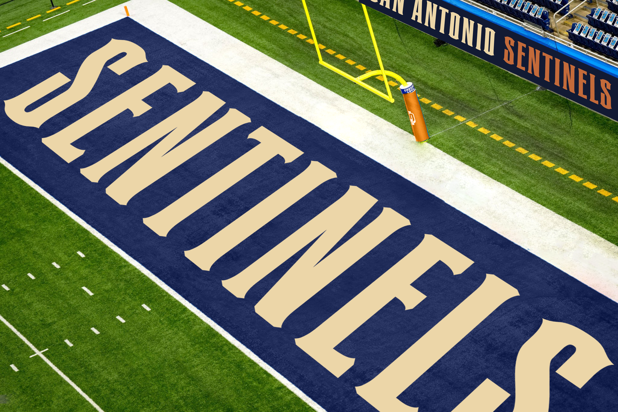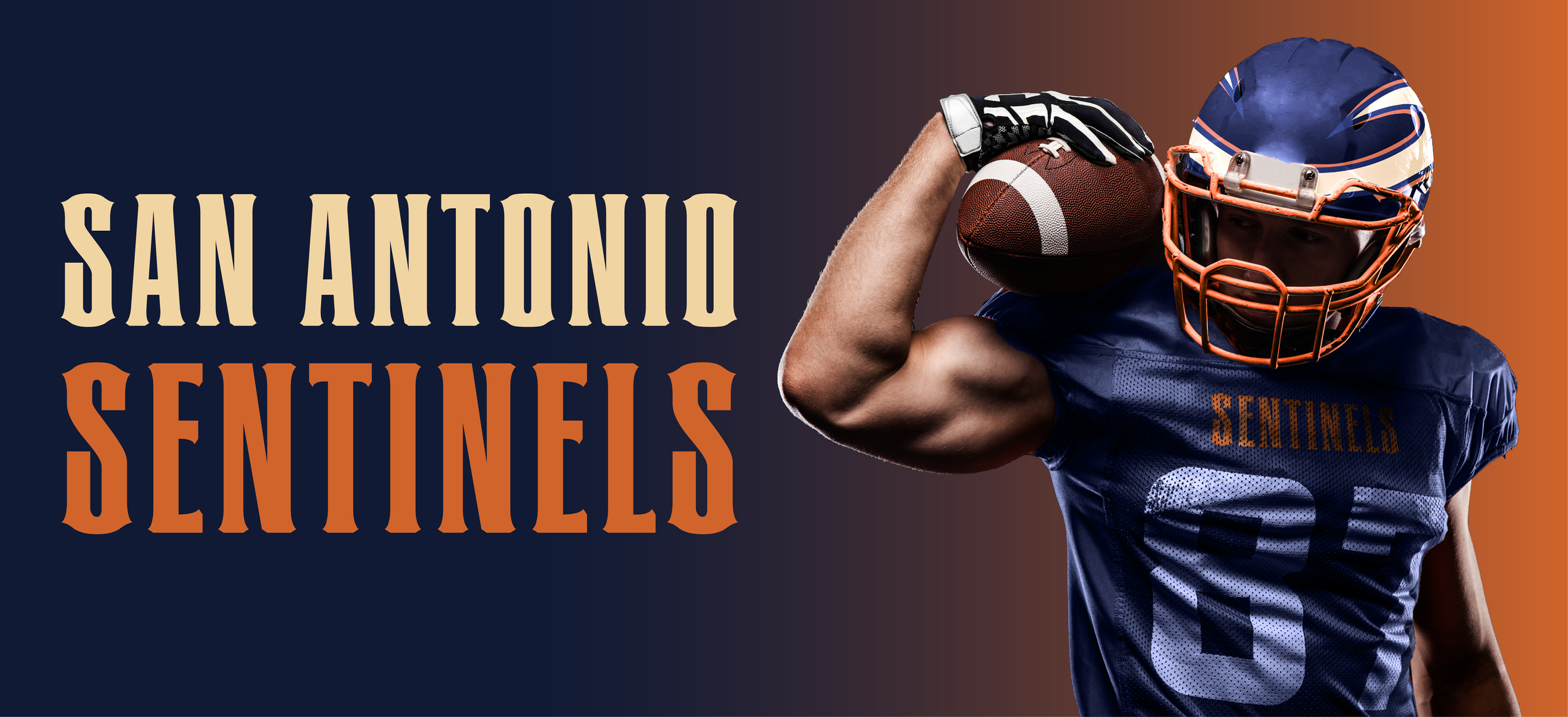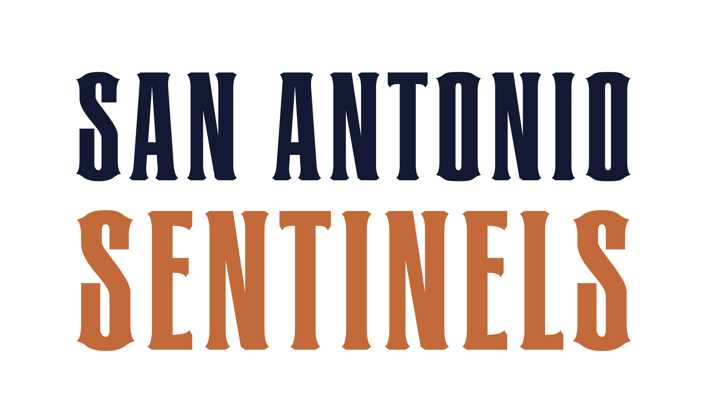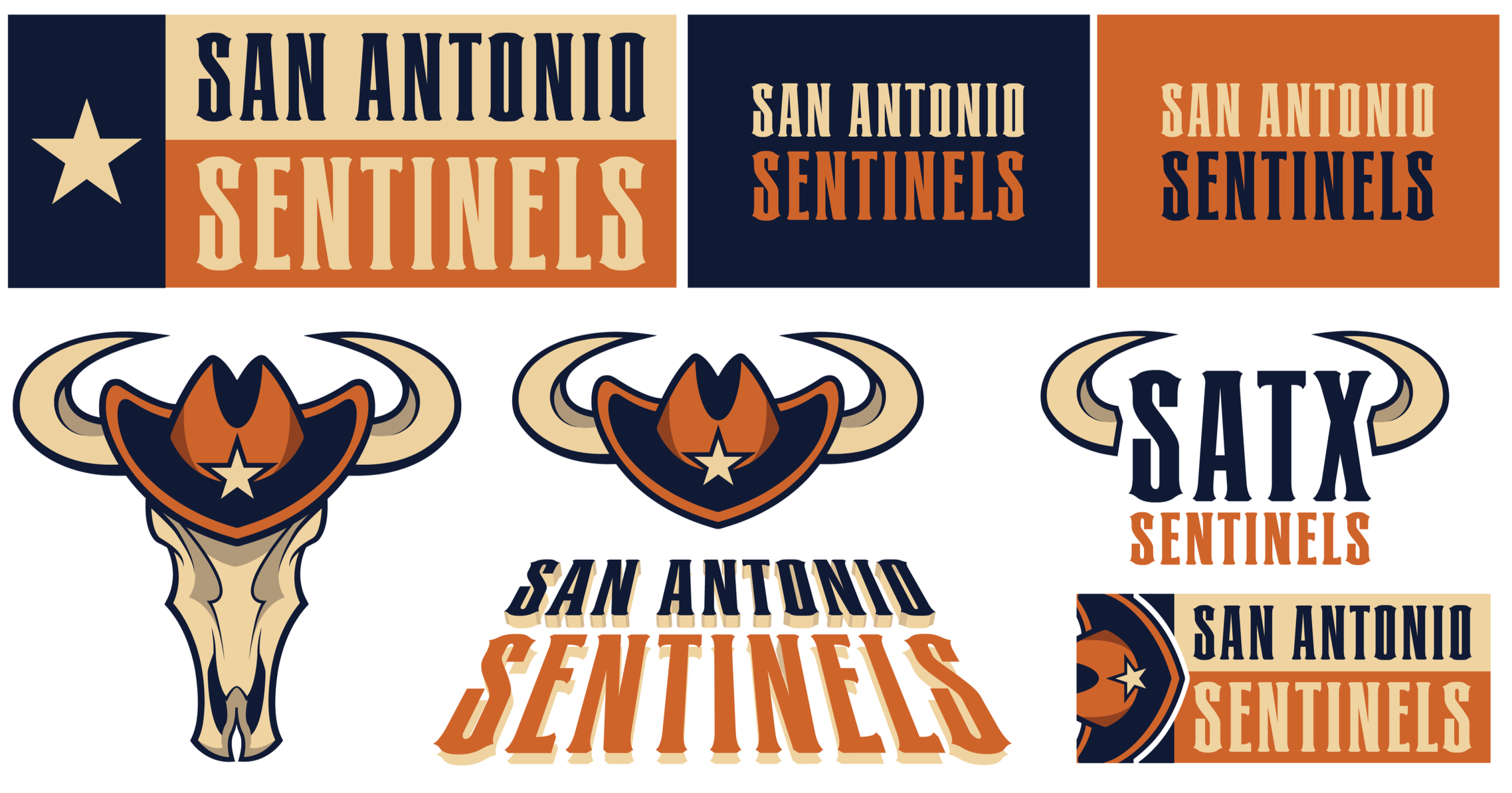 Paying homage to its home state, the San Antonio Sentinels logo features Texas Longhorn horns, the Lone Star, and a cowboy hat.