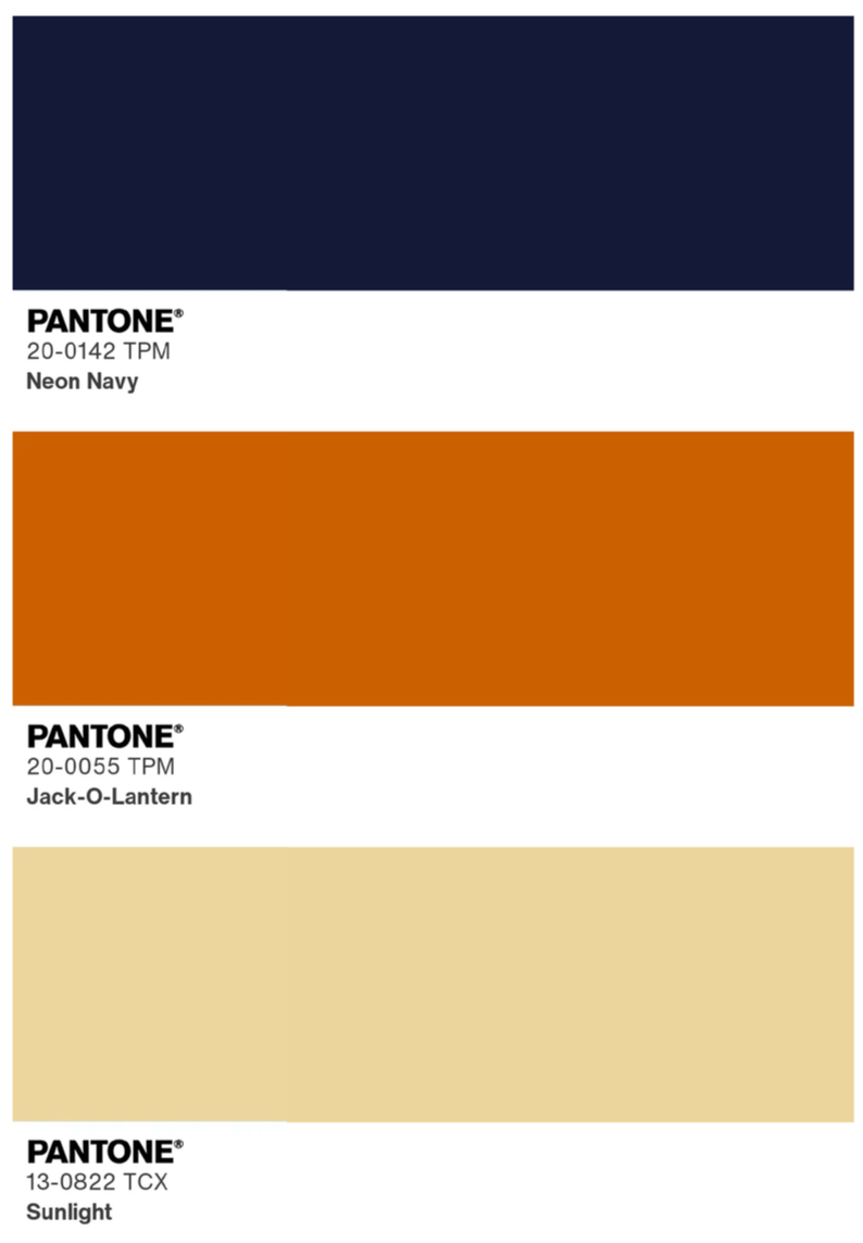 The Sentinels color palette is inspired by the hot desert days and cool nights. Neon Navy and Jack-O-Lantern are the two primary colors, while Sunlight is a neutral, secondary color.